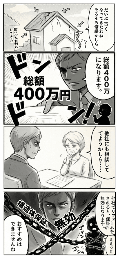 「他社でリフォームをされると、構造体の保証が無効になります。おすすめはできませんね」