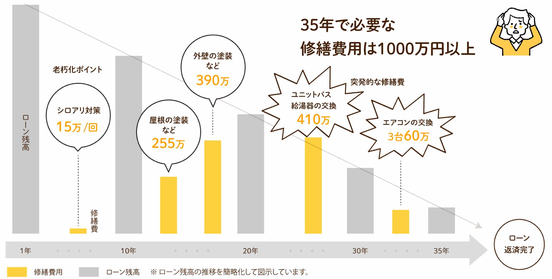 実は、35年間でマイホームに必要な修繕費用は、少なくとも1,000万円以上(戸建て)となる方も!
