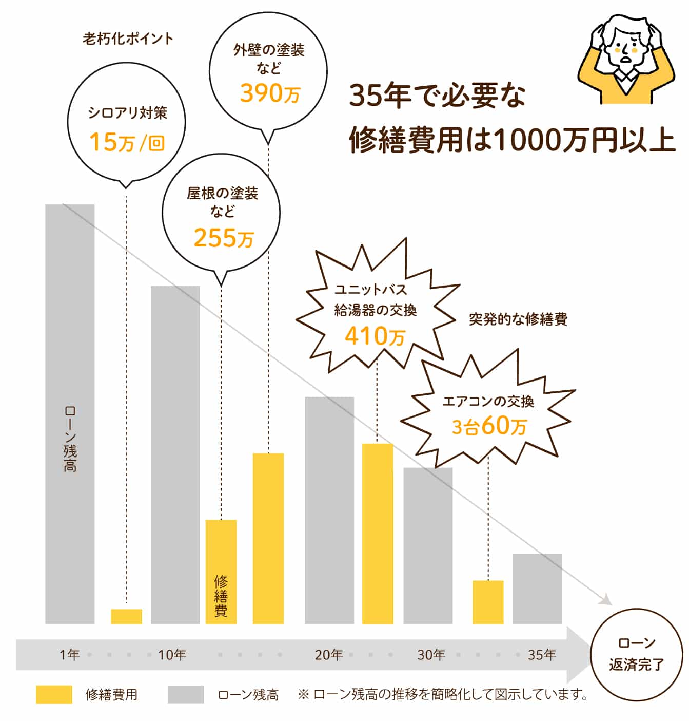 シロアリ対策に屋根や外壁塗装、35年でかかる修繕費用はなんと1000万円以上!